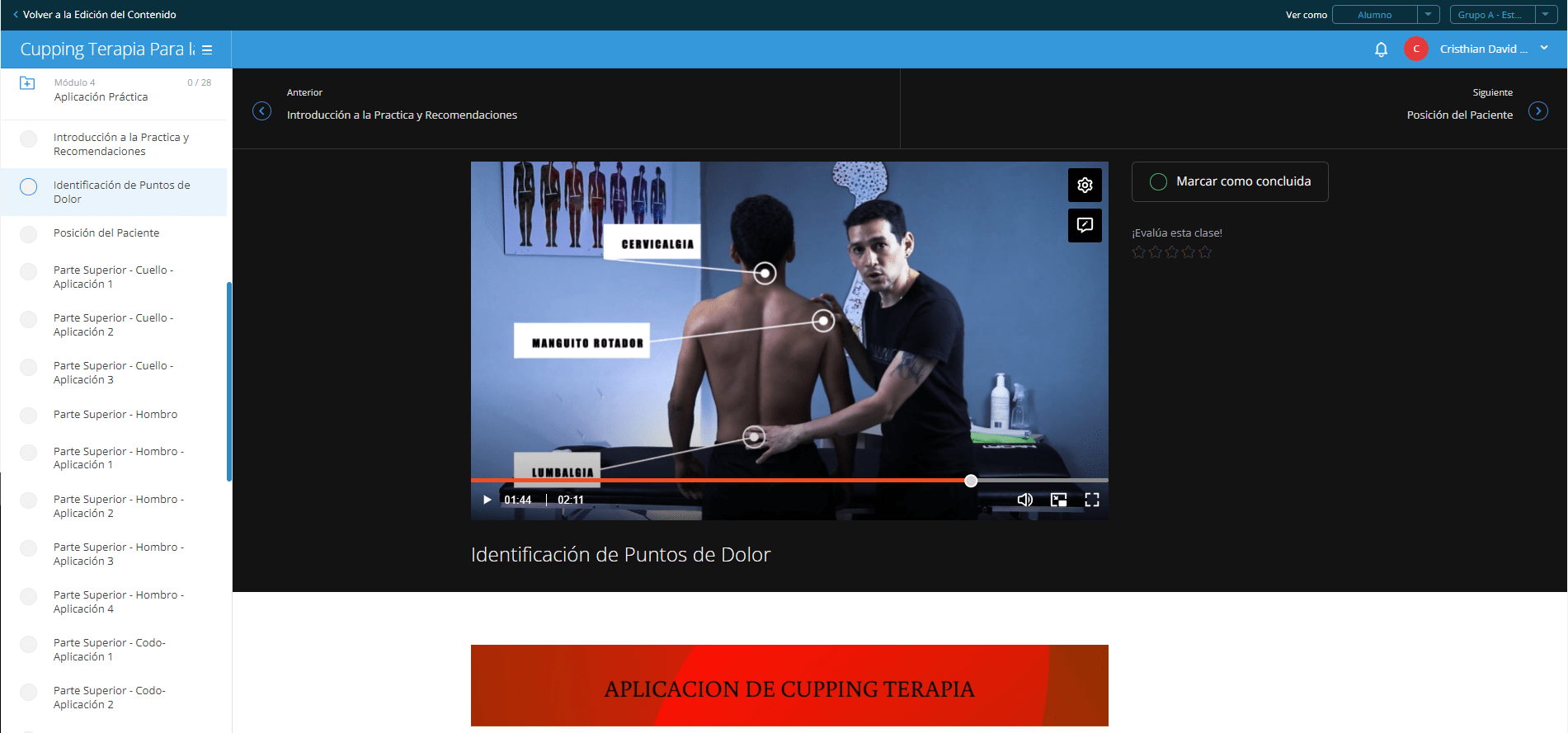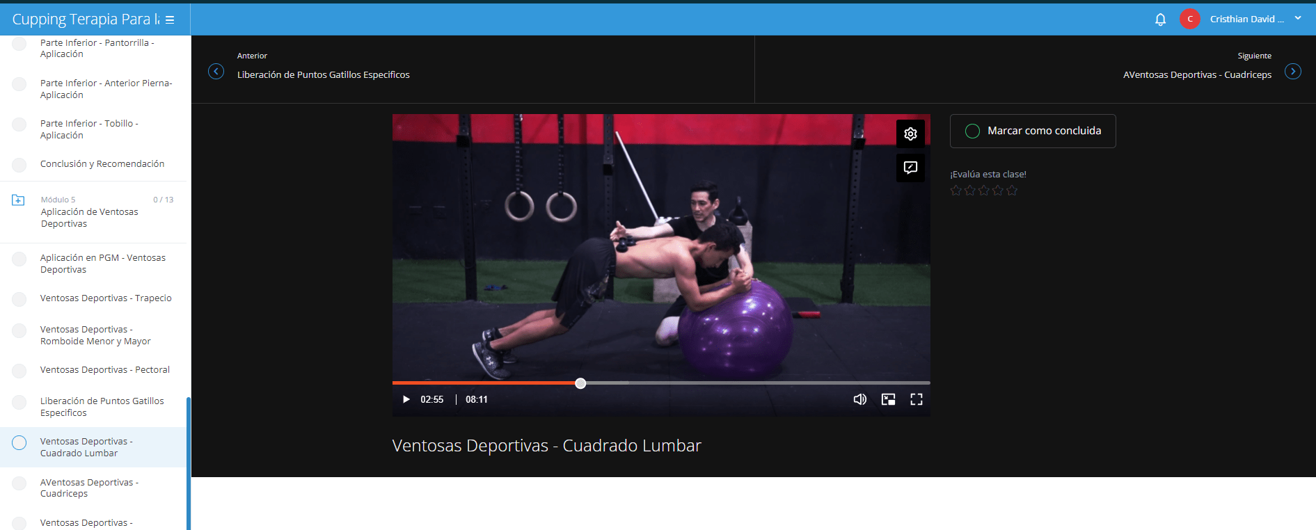 Con nuestro programa online Cupping Terapia Para la Recuperación Física, aprenderás desde cero todos los fundamentos teóricos y prácticos para la aplicación de esta terapia en la recuperación de lesiones deportivas y alivio del dolor en puntos específicos o puntos gatillos miofasciales, también vas a aprender la técnica de aplicación de ventosas deportivas para la reprogramación postural y fortalecimiento específico de un grupo muscular.