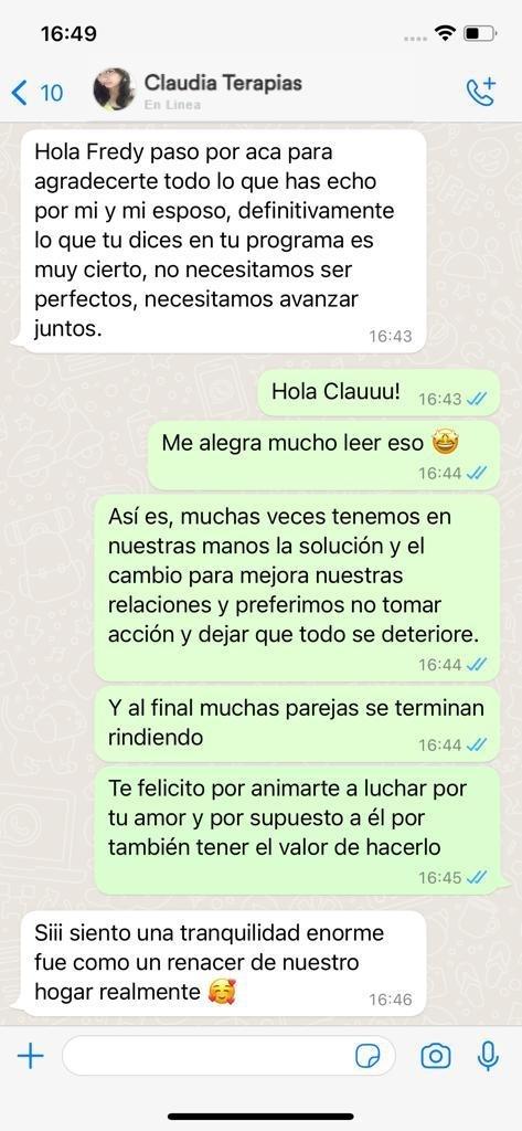 ¡Salvaste nuestro matrimonio Fredy! Recuerdo lo frustrada que estaba y a punto de tirar la toalla después de 5 años de casados y 2 hermosos hijos, Alberto y yo vivíamos juntos pero estábamos separados, era increíble como se había apagado el amor y la pasión que tuvimos en los primeros años. Tu programa fue la mayor bendición para nuestro hogar.