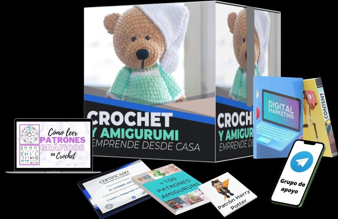 Por fin está disponible el único curso de Crochet y Amigurumi que te enseña desde cero a tejer hermosas piezas de alta calidad, de manera práctica mediante la creación de más de 10 proyectos.